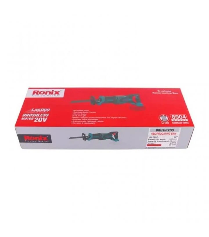 Ronix 8904 - аккумуляторная сабельная пила без АКБ и ЗУ, созданная для использования в условиях, где важны мобильность, надёжность и универсальность.