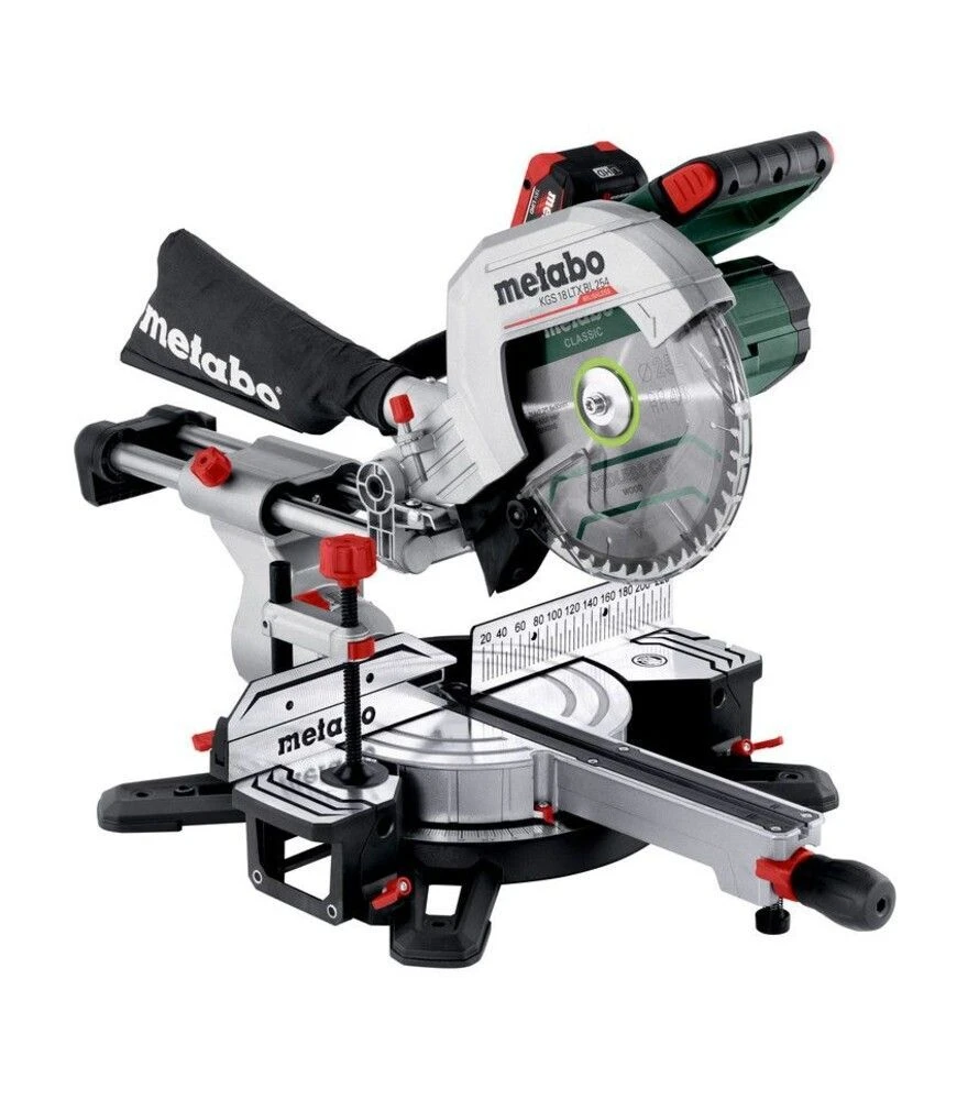 Metabo KGS 18 LTX BL 254 с комплектом 2x8 А·ч - решение для точного распила широких и толстых материалов на объектах без стационарного питания. Обеспечивает стабильную производительность, удобную настройку углов и длительный ресурс работы благодаря бесщеточному двигателю и аккумуляторам LiHD.