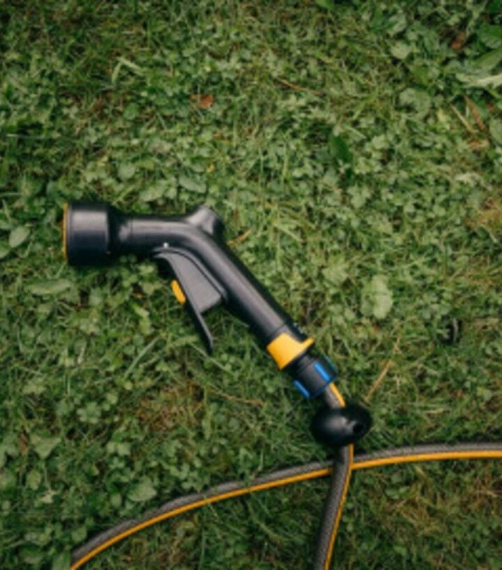 Подсоедините пистолет к шлангу, откройте воду и нажмите передний курок. Отрегулируйте необходимую интенсивность и при необходимости зафиксируйте курок. После завершения работы перекройте воду и отсоедините распылитель.