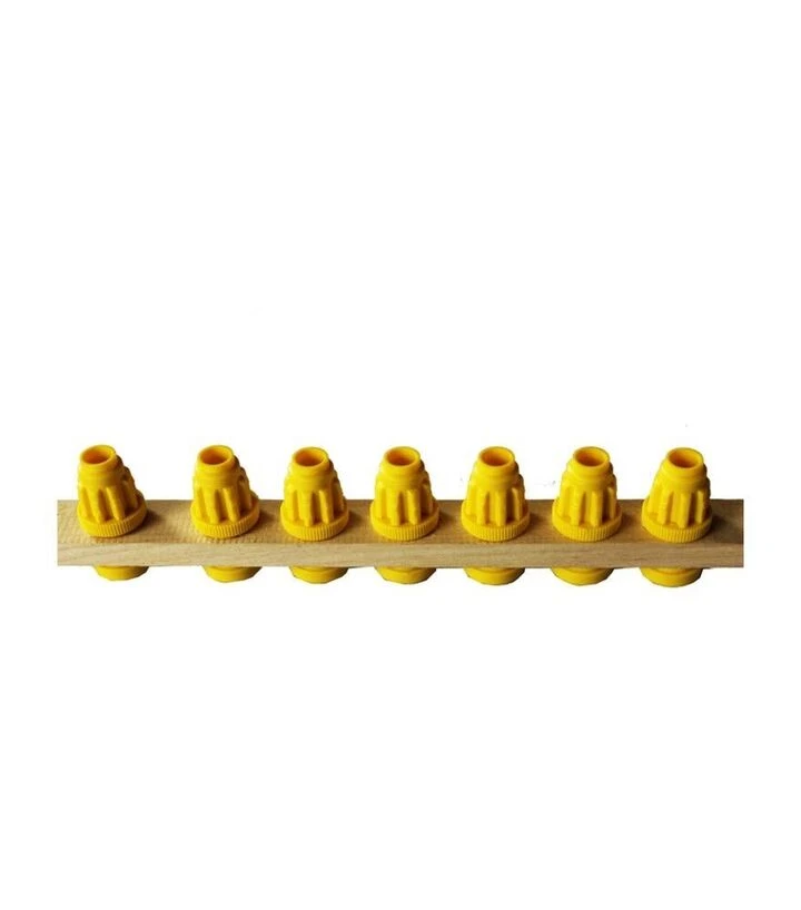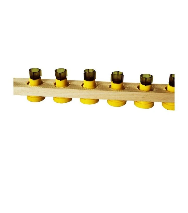 Прививочная планка с отверстиями для цоколей системы «Джентерский сот» используется при выводе пчелиных маток как основа для размещения мисочек с личинками. Она устанавливается в рамке улья и позволяет упорядоченно закреплять цоколи с держателями мисочек. Благодаря готовым отверстиям планка обеспечивает одинаковое расстояние между мисочками, что важно для равномерного ухода пчёл. Конструкция планки упрощает подготовку прививочных рамок и подходит для работы с большим количеством личинок одновременно.