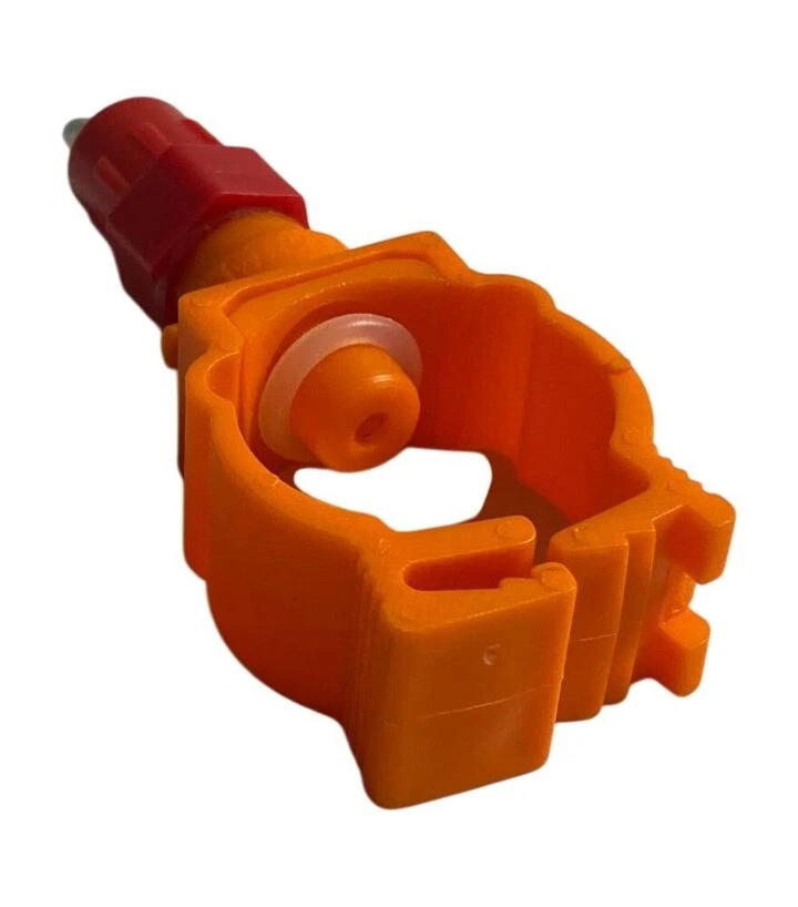 Поилка C9 работает по ниппельному принципу. Вода подаётся только в момент нажатия на ниппель клювом. Угол действия 360° позволяет птице активировать подачу воды с любой стороны, что удобно при различных условиях размещения. После прекращения контакта подача воды автоматически останавливается, что предотвращает разливы и увлажнение подстилки.