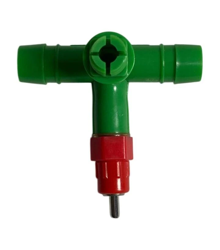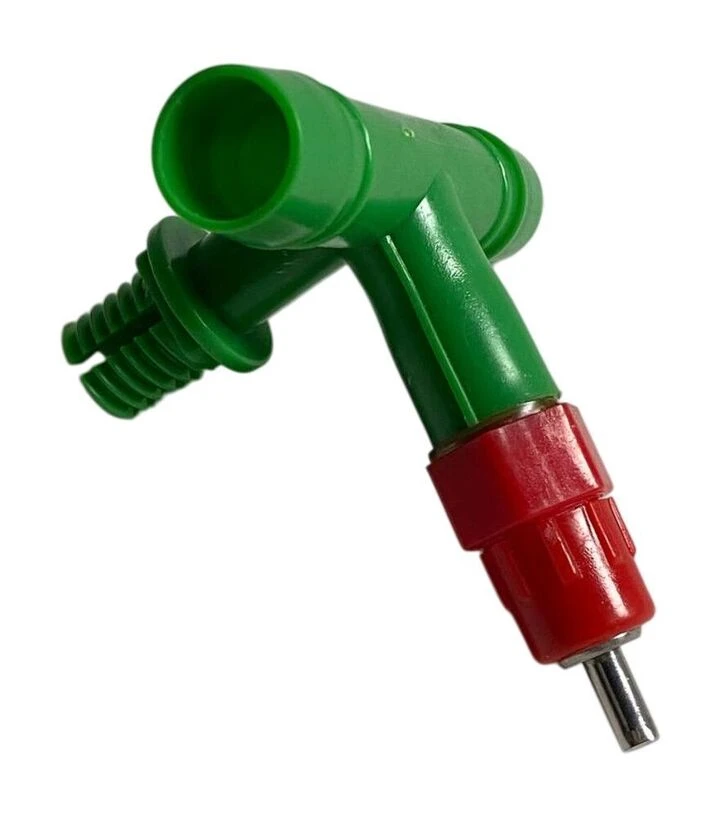 Поилка C12 работает по ниппельному принципу. Внутри механизма расположен металлический штифт, который перекрывает подачу воды. Когда птица касается штифта клювом или слегка сдвигает его, из ниппеля вытекает небольшое количество воды - ровно столько, сколько необходимо для поения. После прекращения контакта подача воды сразу же останавливается. Такой механизм позволяет каждой птице самостоятельно регулировать потребление воды без лишних потерь.