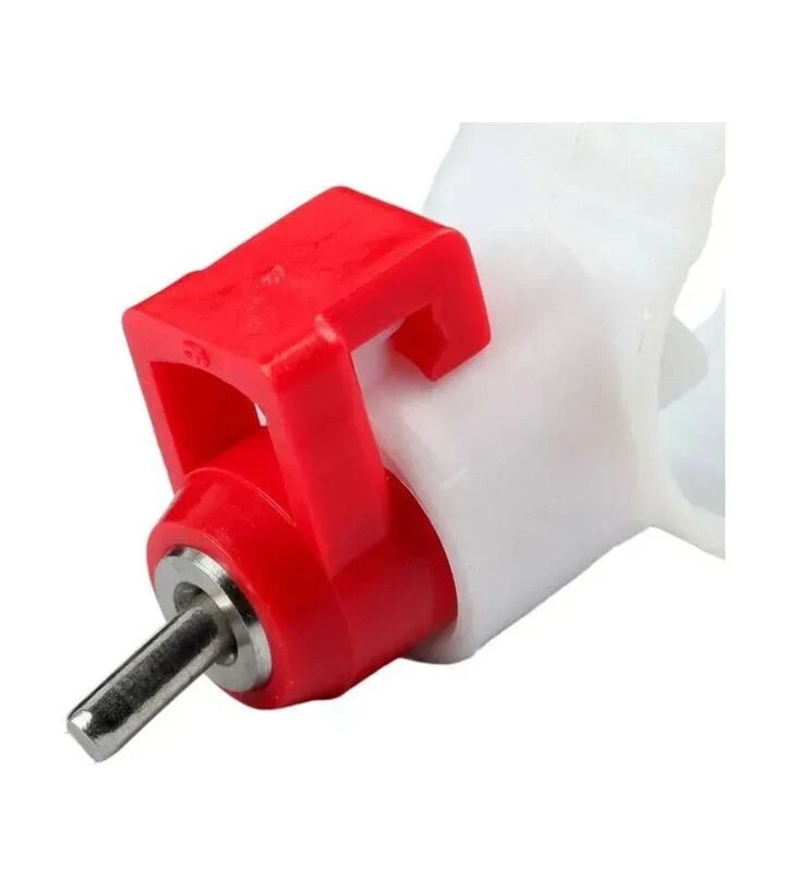 Поилка C14 работает по ниппельному принципу. Внутри расположен ниппель с металлическим штифтом, который перекрывает подачу воды. Когда птица касается ниппеля клювом, штифт смещается, и вода поступает небольшими порциями. После прекращения контакта подача воды автоматически останавливается. Особенностью данной модели является возможность вращения на 360 градусов, что позволяет птице пить с любой стороны, независимо от её положения относительно трубы.