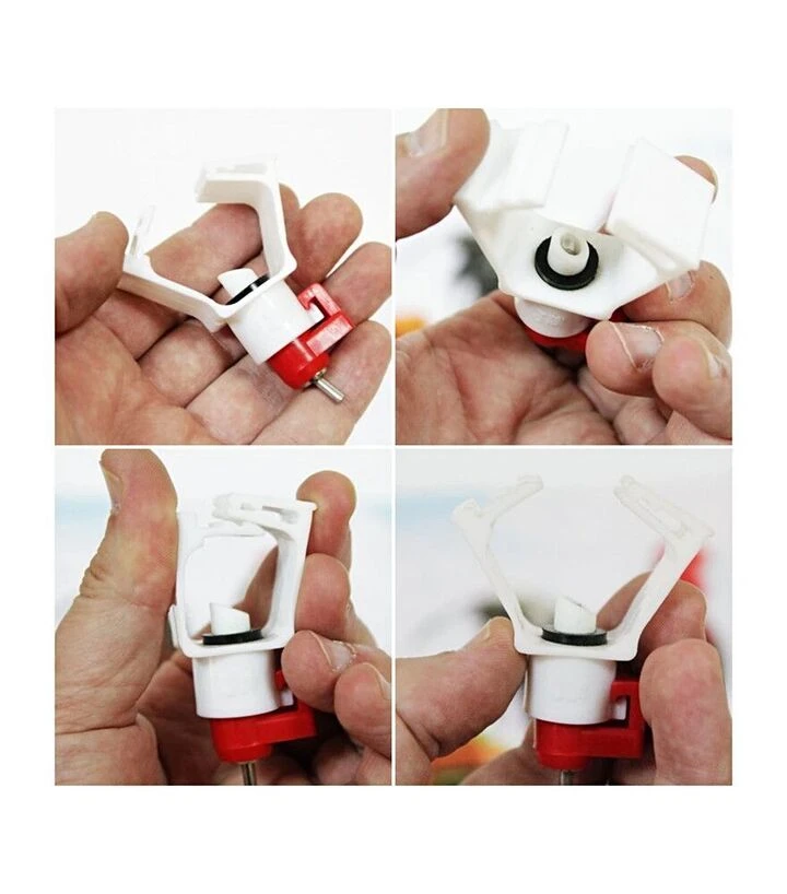 Поилку устанавливают в квадратную трубу диаметром 25 мм с помощью замкового механизма, который обеспечивает плотное и герметичное соединение. После монтажа систему подключают к источнику воды. Высоту установки подбирают в зависимости от возраста и размера птицы, чтобы птицы могли без усилий доставать до ниппеля. После запуска системы рекомендуется проверить корректность подачи воды и работу механизма вращения.