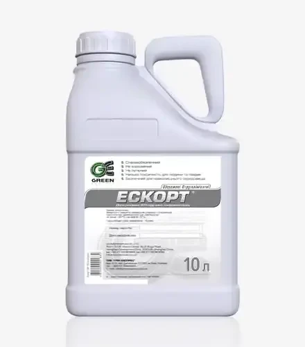 Ескорт покращує закріплення робочого розчину гербіцидів на листовій поверхні бур’янів, що сприяє ефективнішому проникненню активних речовин. Він не чутливий до жорсткості води, яка використовується для обприскування.
