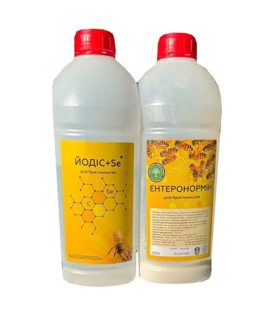 Пробиотик Энтеронормин с водным раствором Йодис+Se, 50 доз применяют для профилактической поддержки, восстановления после стрессов и в комплексных схемах работы с проблемами пасеки. Активация перед использованием, дозировка 25 мл и возможность внесения в корм или опрыскивания делают набор удобным для практической работы на пасеке. (E502001)