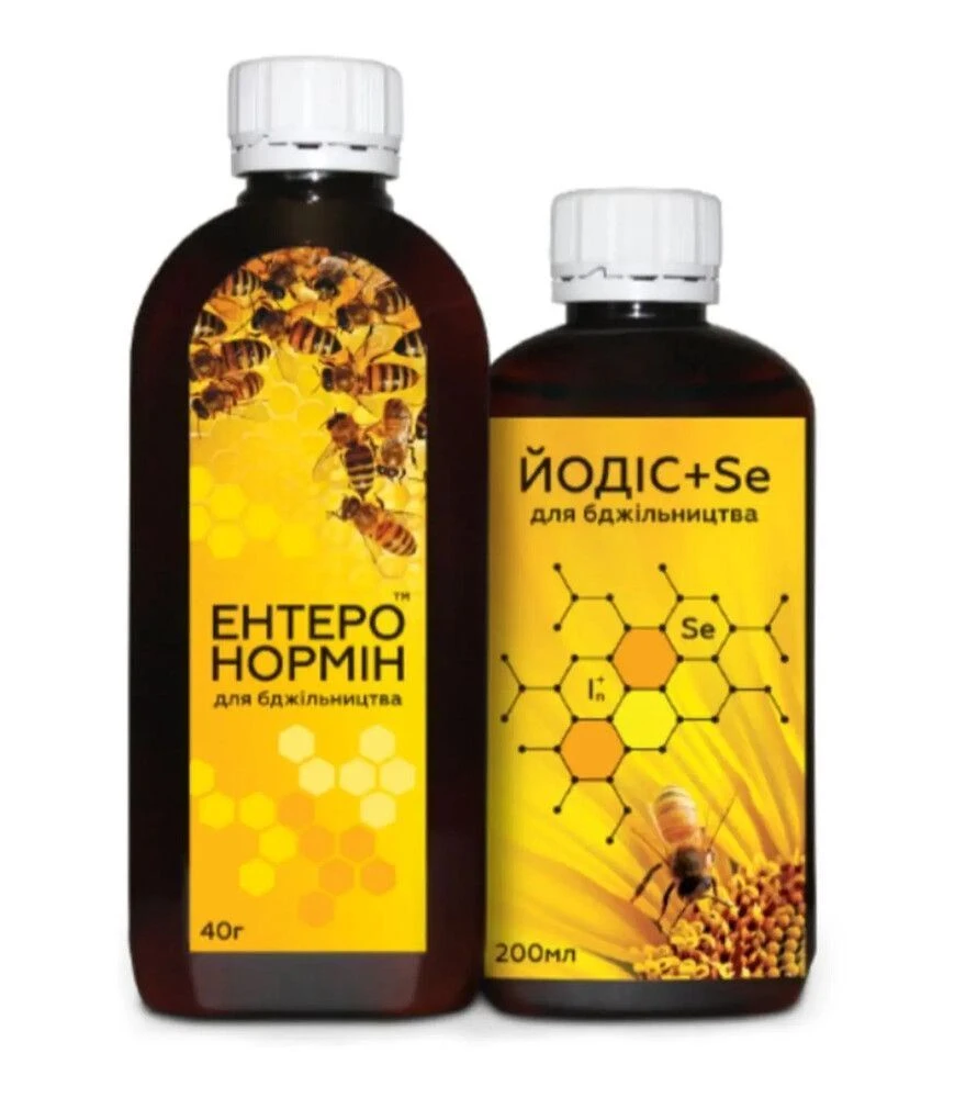 Комплект «Энтеронормин» + водный раствор «Йодис+Se» предназначен для поддержки пчелосемей в профилактических и восстановительных схемах. Пробиотический компонент применяют для нормализации микрофлоры, повышения иммунного ответа и поддержки семей в периоды нагрузок. Используют в комплексных мероприятиях при бактериальных, вирусных и грибковых проблемах, а также после отравлений (потрав) и после применения акарицидных средств. Комплект рассчитан на 10 доз: 40 г пробиотика во флаконе 250 мл и 200 мл «Йодис+Se», который добавляют во флакон для активации микроорганизмов.