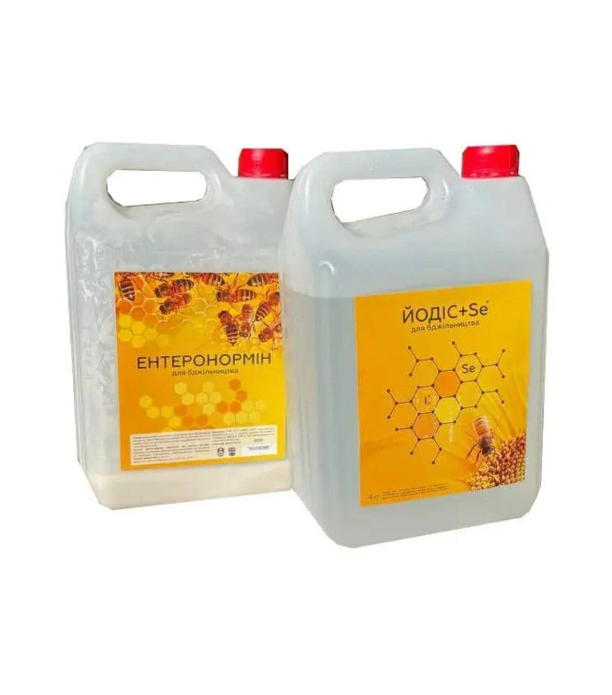 Пробиотик Энтеронормин с водным раствором Йодис+Se, 200 доз применяют для профилактической поддержки и восстановления пчелосемей через подкормку или опрыскивание. Большой комплект, активация перед использованием и понятная дозировка 25 мл помогают организовать курсовую работу на пасеке в течение сезона. (E2008004)