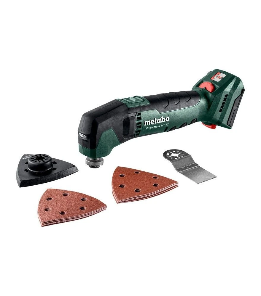 Metabo MT 12 Powermaxx без АКБ и ЗУ - универсальный осцилляционный инструмент для мобильных работ. Сочетает регулировку скорости, совместимость с распространенными системами крепления насадок и компактные габариты. Подходит для точной резки и шлифовки в условиях ограниченного пространства и ежедневного использования на монтаже.
