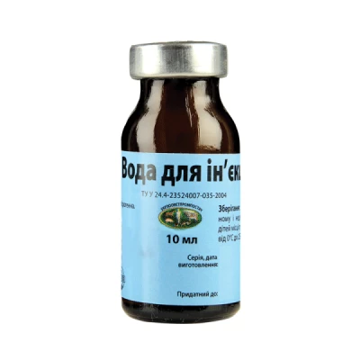 Раствор для инъекций – стерильный растворитель объемом 10 мл, предназначенный для приготовления инъекционных лекарственных и диагностических средств. Не содержит примесей, апирогенная и химически неактивная. Без фармакологического действия.
