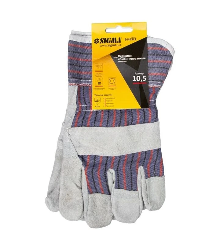 Перчатки комбинированные Sigma замшевые, размер 10,5, класс ВС сшивная ладонь (9448321)
