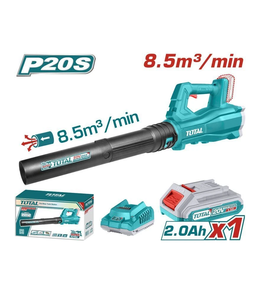Садовая аккумуляторная воздуходувка TOTAL TABLI203235 - практичный автономный инструмент для ухода за газоном и придомовой территорией, сочетающий лёгкость и достаточную мощность для бытовых задач.