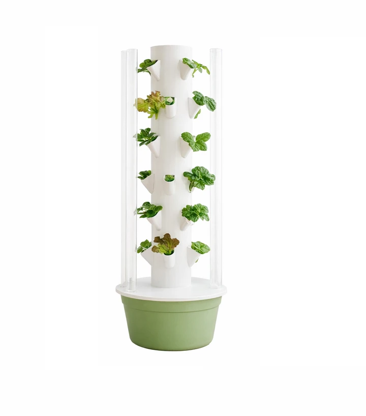 Вертикальная гидропонная система с LED-подсветкой имеет компактный дизайн, что позволяет использовать ее в ограниченных пространствах. Система обеспечивает автоматизированный полив и контроль за питательными веществами, что упрощает процесс выращивания. LED-подсветка имеет регулируемую интенсивность, что позволяет адаптировать освещение под потребности разных растений.