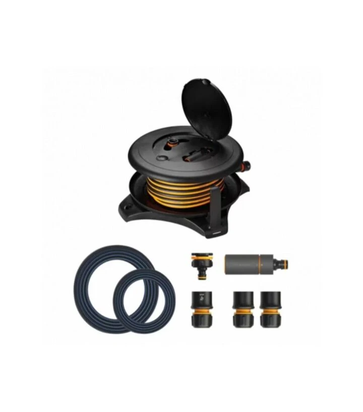 Катушка помогает быстро организовать полив без сложной подготовки. Длина шланга позволяет охватить значительную часть участка, а вращение на 360° упрощает направление потока воды между зонами. Готовый комплект позволяет избежать дополнительных расходов на аксессуары и ускоряет процесс полива в период активных работ.