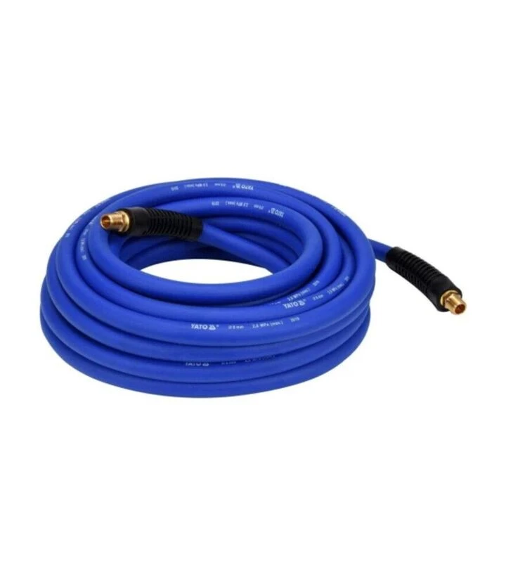 YATO YT-24233 - компактный, прочный и удобный пневматический шланг для мастерской или гаража. Идеален, если инструмент работает рядом с компрессором и требуется простой, надёжный и долговечный шланг.