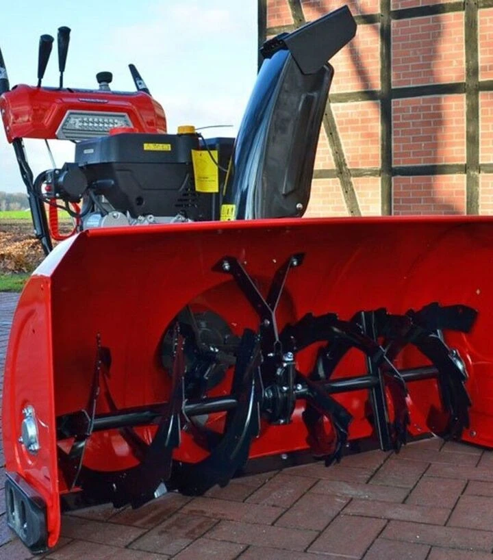 Конструкция этого снегоуборщика предусматривает самоходную колесную трансмиссию, что облегчает движение агрегата без большой физической нагрузки на оператора. Передачи - 6 вперед и 2 назад - делают машину маневренной в узких или сложных участках. Дальность выброса снега может достигать до 15 м, что позволяет отводить снег далеко от обрабатываемой зоны, не создавая препятствий во время работы. Наличие регулировки направления и дальности выброса дает пользователю возможность точно направлять снег в нужном направлении, адаптируя работу под конкретные условия и конфигурацию территории.