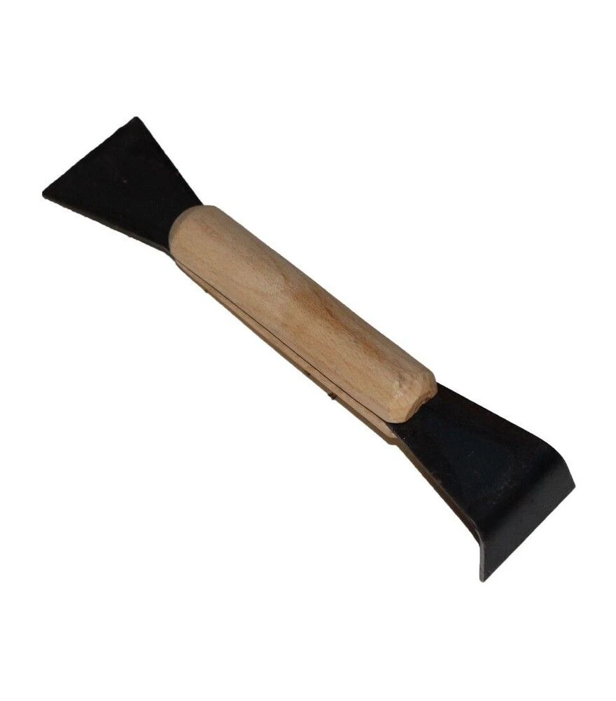 Стамеску используют для поддевания элементов улья и удаления прополиса и восковых остатков. Лезвие прикладывают к поверхности и плавными движениями счищают загрязнения. Толщина лезвия позволяет работать с плотными наслоениями без деформации инструмента.
