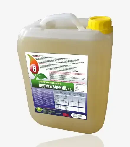 Кормин Борный представляет собой высококонцентрированное микроудобрение, которое акцентируется на содержании бора в форме боретаноламина. Это удобрение особенно полезно для борофильных культур, требующих бора для здорового роста и развития. Бор является критическим элементом для цветения и завязывания плодов, а также для синтеза и транспортировки углеводов и регуляции роста.