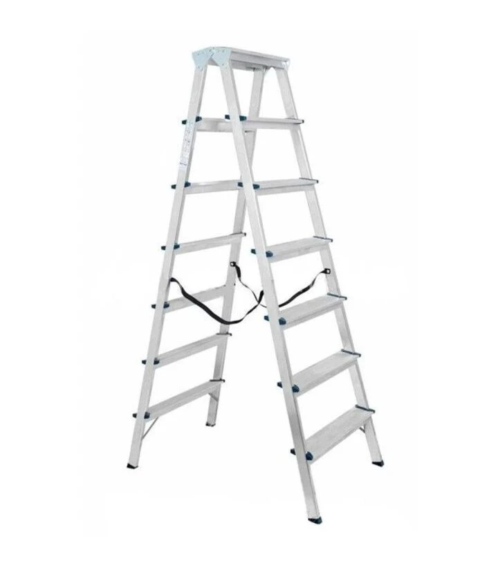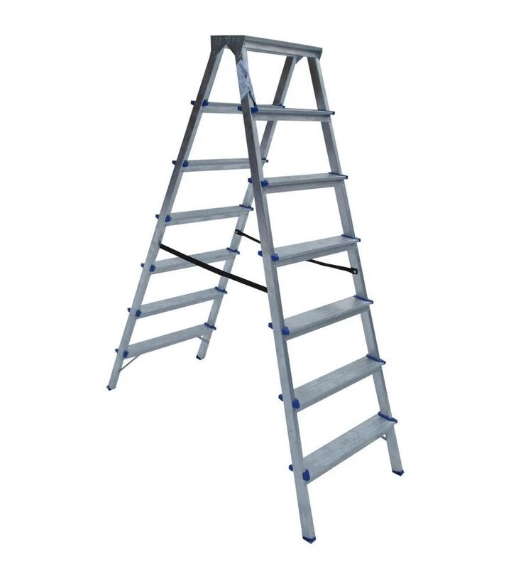 Стремянка имеет противоскользящие ножки и прочные алюминиевые профили, что обеспечивает стабильность во время работы. Двухсторонняя конструкция позволяет двум пользователям работать одновременно или быстро менять позицию без перемещения лестницы.