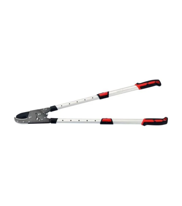 Храповый механизм позволяет равномерно передавать усилие в зоне среза, что особенно важно при работе со старыми, твёрдыми или сухими ветками. Стальное лезвие рассчитано на высокие нагрузки - инструмент сохраняет работоспособность при регулярном использовании. Телескопическая рукоятка обеспечивает комфорт при работе на высоте или в густой кроне деревьев.