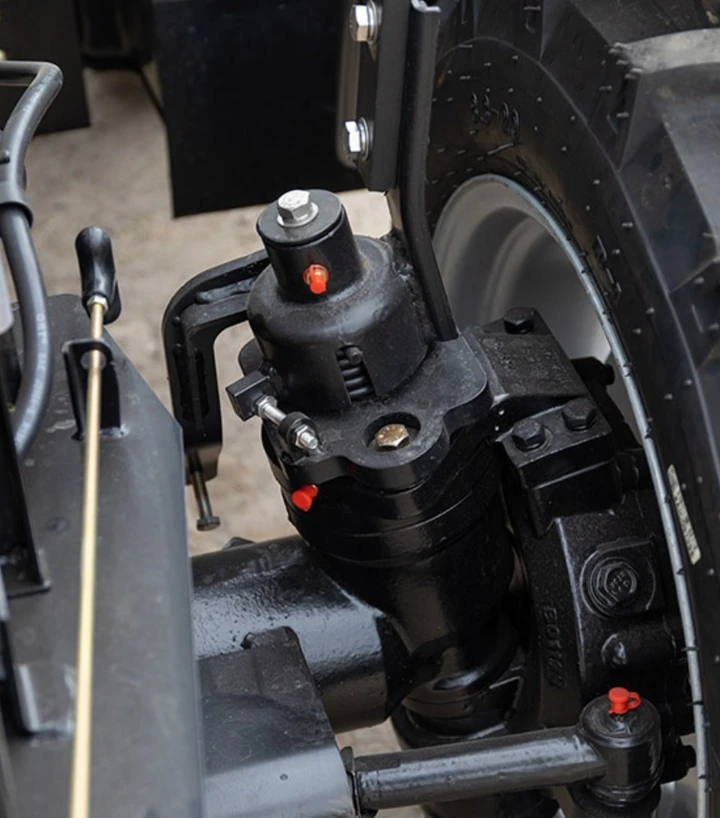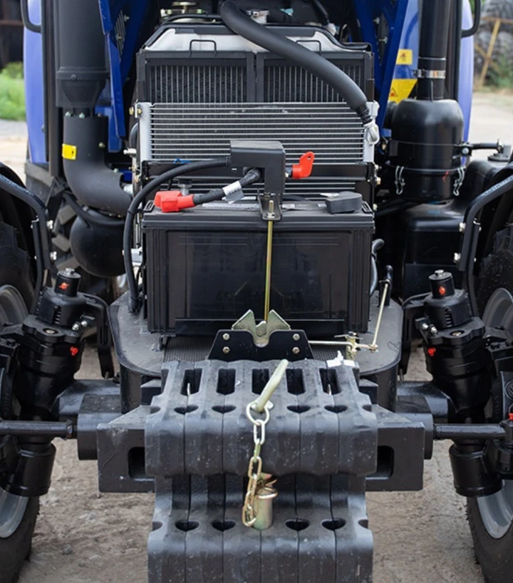 Габариты 4136×1870×2822 мм и масса 2610 кг обеспечивают устойчивость при тяговых работах и работе с тяжелым навесным оборудованием. Полный привод 4×4 позволяет работать на влажных, рыхлых и неровных участках. Трактор укомплектован трехточечной навеской с грузоподъемностью 910 кг, что расширяет возможности применения различного оборудования. Кабина имеет ровный пол, удобные органы управления, люк для вентиляции и 7-контактный разъем для прицепа. Механическая коробка 8+8 с реверсом поддерживает широкий диапазон скоростей для различных видов работ.