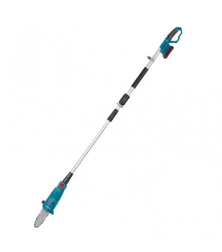 Высоторез оснащён телескопической штангой, поворотной режущей головой и системой автоматического смазывания. Безключевое натяжение цепи облегчает подготовку к работе. Резиновая противоскользящая ручка повышает комфорт, а плечевой ремень равномерно распределяет нагрузку. Благодаря аккумуляторному питанию инструмент не создаёт выбросов и позволяет работать в труднодоступных местах без кабеля.
