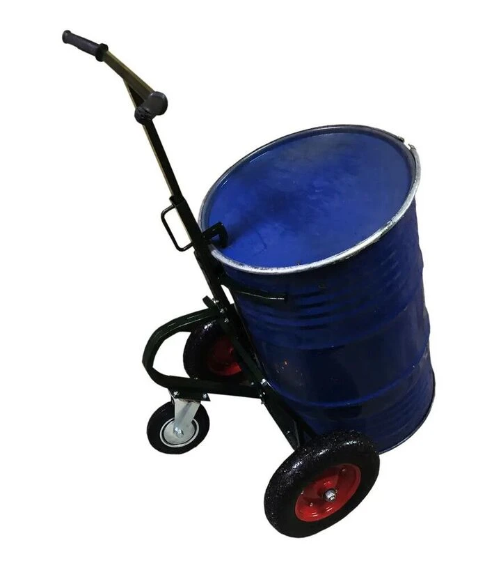 Бочка или бидон устанавливается на подъёмные лапы тележки, после чего она легко перемещается благодаря колёсам диаметром 390 мм и шириной 90 мм. Высота конструкции 1400 мм позволяет комфортно управлять тележкой и избегать лишнего наклона при перевозке. Тележка обеспечивает безопасную фиксацию груза во время движения.