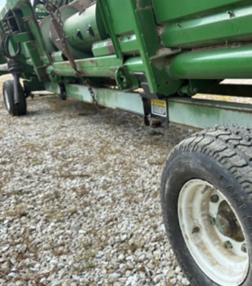 Тележка для транспортировки жатки Unverferth HT-25 предназначена для эффективной перевозки жаток шириной захвата до 7,5 метров. Эта тележка имеет надежную конструкцию, состоящую из длинного дышла, переднего и заднего мостов, что обеспечивает устойчивость во время транспортировки. Вес тележки составляет 1000 кг, что делает ее достаточно прочной для использования в аграрном секторе. Тележка легко подключается к тракторам, что упрощает процесс транспортировки жаток с поля на склад или к месту обработки.