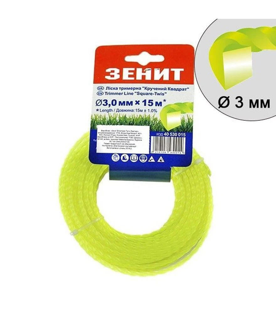 Леска для триммера Зенит крученый квадрат 3,0 мм, 15 м (40530015)