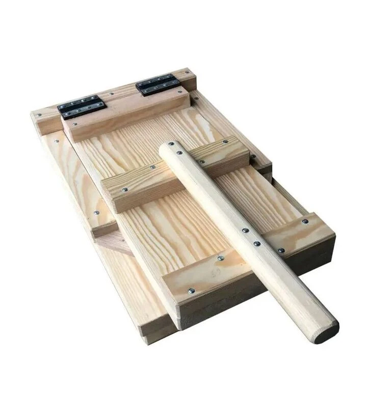 Воскопресс предназначен для получения воска из воскосырья методом механического выдавливания. Используется после предварительного разогрева восковой массы для максимального извлечения воска без сложного оборудования. Конструкция подходит для работы в условиях пасеки или подсобного хозяйства. Пресс изготовлен из сосны, что обеспечивает прочность и стабильность при нагрузке. Простой принцип работы позволяет использовать его без специальной подготовки.