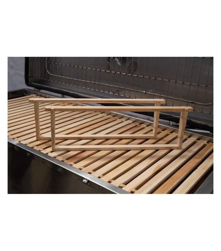 Оборудование позволяет выполнять несколько операций на одном рабочем месте, сокращая время и физические затраты. Подходит для пасек с большим объёмом рамок и помогает упорядочить процессы переработки воска и работы с мёдом.