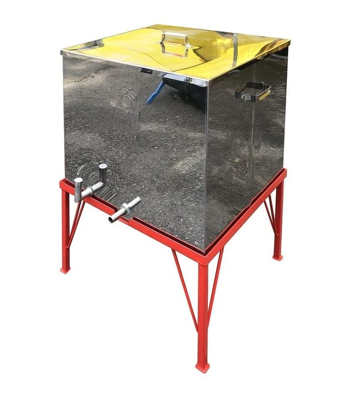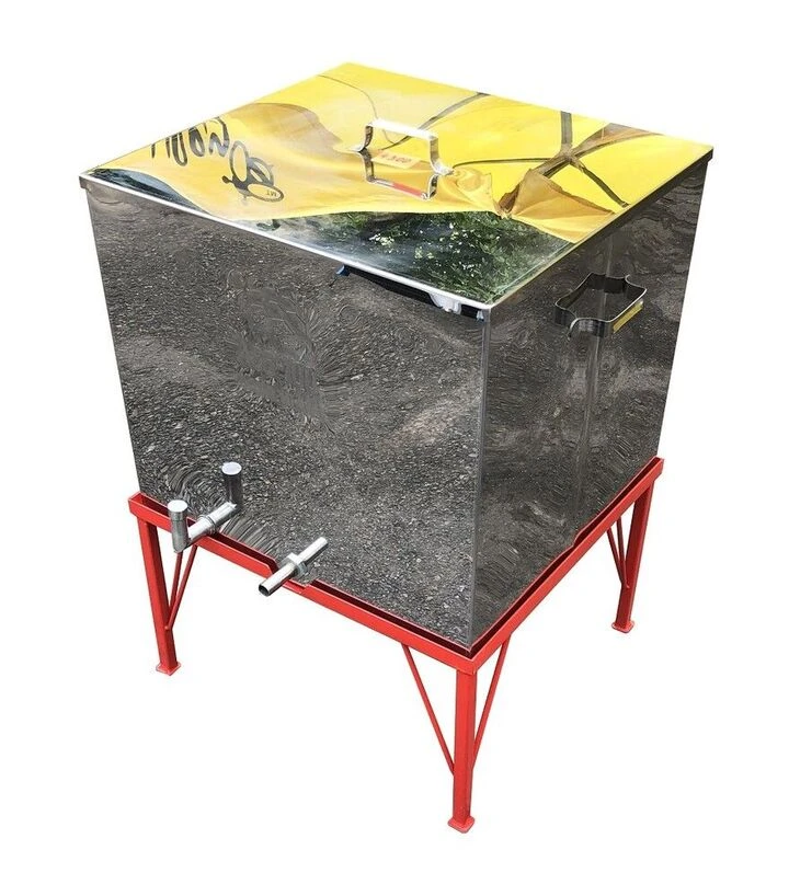 Паровая воскотопка на 13 рамок предназначена для перетапливания воска без срезания сырья с рамок, а также для переработки забруса и обрезков сотов. Позволяет одновременно обрабатывать значительное количество рамок разных типов. Изготовлена из пищевой нержавеющей стали AISI 304. Комплектуется баком, корзиной для загрузки, крышкой и металлической подставкой. Подходит для использования на пасеках с большим объемом работ.