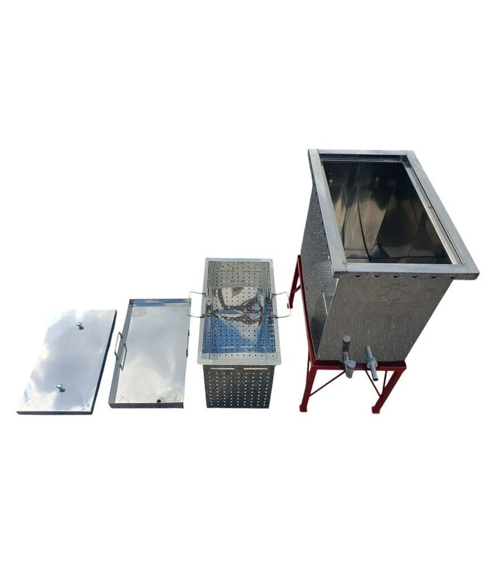 Позволяет перерабатывать рамки без предварительного срезания воска, что экономит время в сезонных работах. Подходит для небольших и средних пасек, где важно совместить перетапливание воска и термическую обработку рамок. Конструкция обеспечивает удобство обслуживания и очистки.