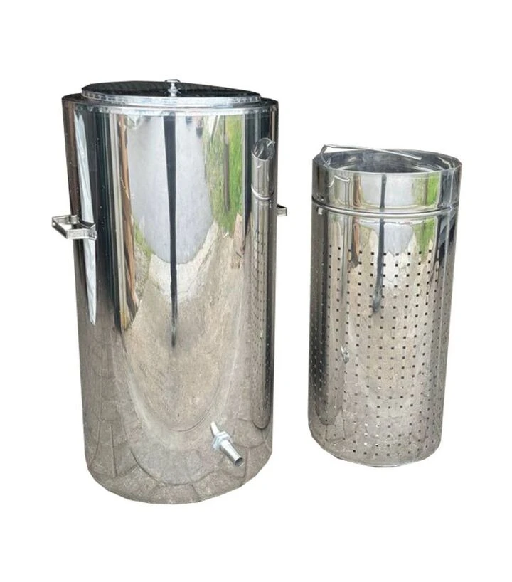 Паровая воскотопка объёмом 30 л предназначена для переработки воскового сырья на пасеках с большим объёмом работы. Конструкция состоит из внешнего и внутреннего баков, корзины для загрузки сырья, крышки, заливного отверстия для воды, ручек для переноски и сливной трубки для готового воска. Изготовлена из пищевой нержавеющей стали AISI 304. Подходит для использования на газовых или электрических плитах.