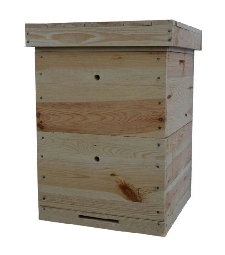 Многокорпусный улей вертикального типа (стояк) под рамку Дадана-Блатта 300 мм с двумя корпусами на 12 рамок каждый. Такая конструкция даёт запас объёма для развития семьи: работают в нижнем корпусе и добавляют второй, когда рамки освоены и требуется больше места. Изготовлен из сосны 1 сорта с влажностью до 15%, элементы проклеены водостойким клеем ПВА Titebond-3. Толщина стенок 33 мм, съёмное дно и рабочие зазоры между корпусами упрощают сезонную работу и уход.