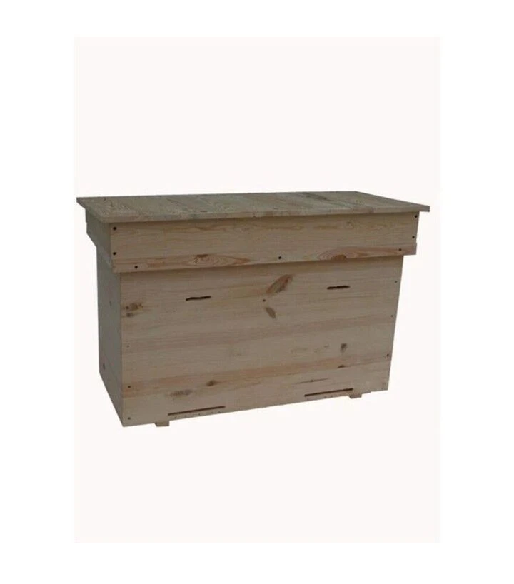 Горизонтальный улей-лежак под украинскую рамку 435 мм, рассчитанный на 20 рамок в одном корпусе. Рамки размещаются в один ярус, поэтому осмотры и перестановки выполняются без подъёма корпусов. Улей изготовлен из сосны 1 сорта с влажностью до 15%, при склеивании используется водостойкий клей Titebond-3. Толщина стенок 33 мм и пространство под рамками поддерживают рабочие условия в гнезде в течение сезона.
