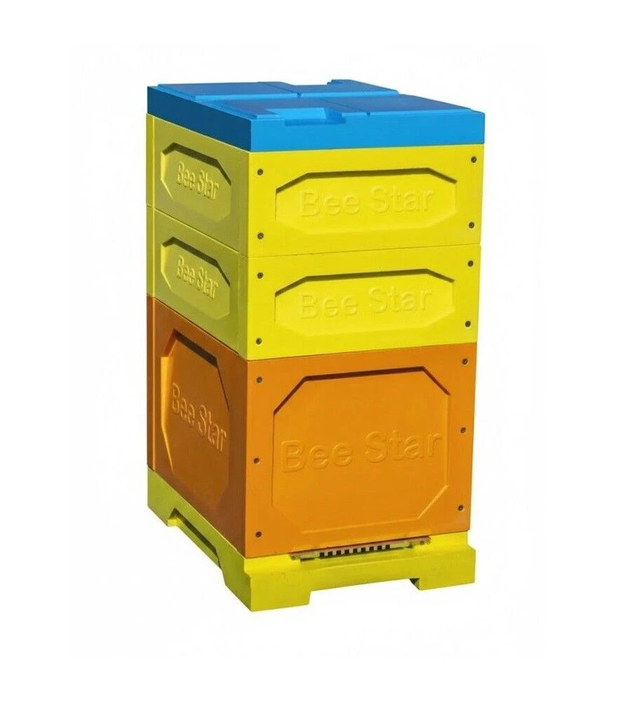 ППУ-улей BeeStar в компактной корпусной системе: 1 корпус под рамку Дадан 300 мм на 8 рамок и 2 магазина под рамку 145 мм (всего 16 полурамок). Детали изготовлены литьём в пресс-форме. В комплекте съёмное сетчатое дно с летковым заградителем и крыша. Корпус и магазины поставляются разобранными (по 4 части) и стягиваются саморезами около 100 мм (не входят). Доступные цвета: синий, жёлтый, коричневый. На странице товара указана возможность использования под 12 украинских рамок (корпус Дадан + магазин).