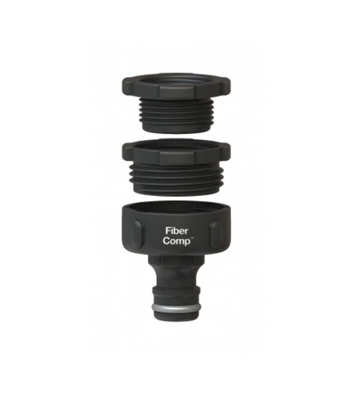 Коннектор для шланга Fiskars FiberComp Multi - универсальный адаптер для подключения садового шланга к кранам разного диаметра. В комплекте предусмотрены три наиболее распространённых размера резьбы: 21 мм (G1/2"), 26,5 мм (G3/4") и 33,3 мм (G1"), что позволяет использовать коннектор практически с любым смесителем в доме или хозяйстве. Изготовленный из прочного материала FiberComp, коннектор в несколько раз выносливее обычных пластиковых аналогов, устойчив к морозу и ежедневной нагрузке. Соединение получается герметичным, а процесс подключения - удобным и быстрым.