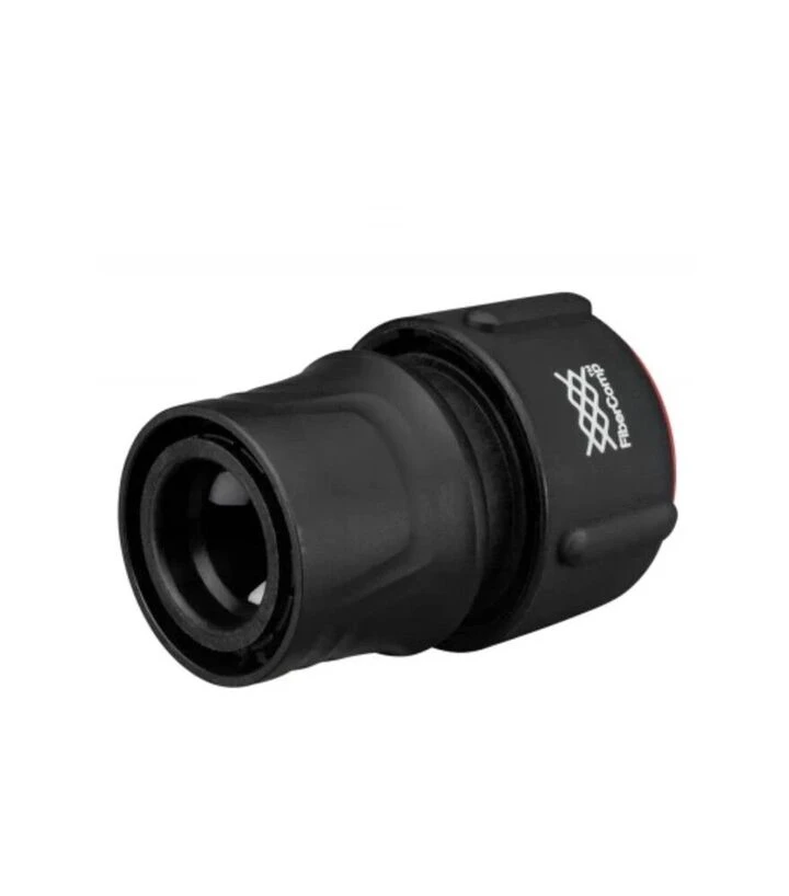 Коннектор для шланга Fiskars FiberComp STOP - практичный элемент системы полива, обеспечивающий быстрое соединение инструментов и автоматическое перекрытие воды, что делает уход за садом и огородом более простым и организованным.