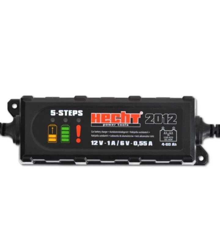 HECHT 2012 - простое, надёжное и безопасное зарядное устройство для повседневных потребностей. Подходит для работы с большинством аккумуляторов 6 В и 12 В, легко подключается и обеспечивает стабильную зарядку без риска для батареи.