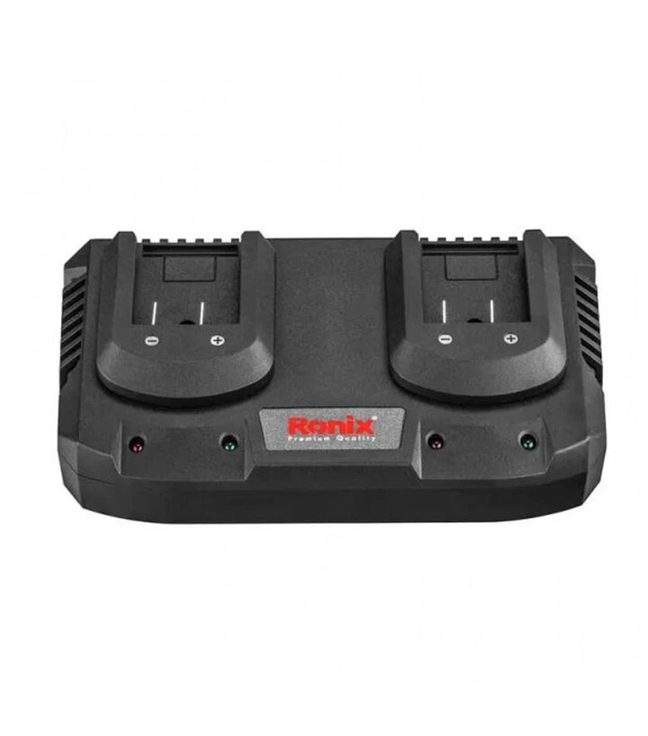 Ronix 8994 - двухканальное зарядное устройство для аккумуляторов 20 В. Каждый канал работает независимо и выдаёт ток 2,2 А. Подходит для пользователей с несколькими инструментами или запасными аккумуляторами. Имеет базовые защиты и простое управление, подходит для стационарного и мобильного применения.