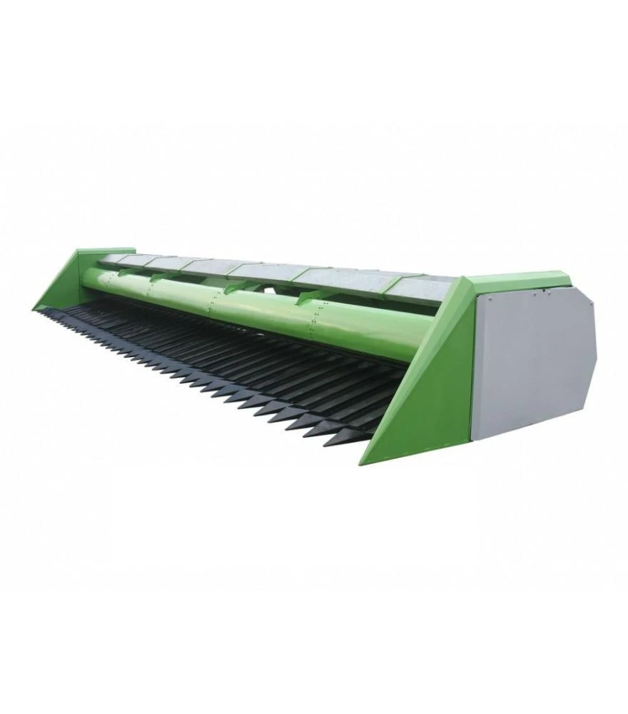 Жатка подсолнечная ЖСН-6 Жатка ЖСН-6 предназначена для уборки подсолнечника на полях с рядовым и сплошным посевом. Захват шириной 6 метров позволяет эффективно работать на средних и крупных площадях. Частота ножа 600 ходов в минуту обеспечивает чистый и ровный срез стеблей. Рабочая скорость - до 10 км/ч, транспортная - до 20 км/ч, что делает агрегат удобным в разных условиях. Жатка изготовлена в Украине с учётом особенностей возделывания подсолнечника. Основной акцент - на простоте конструкции, надёжности и совместимости с отечественными комбайнами.