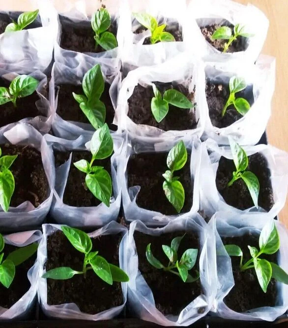 Основна перевага такого способу вирощування - відсутність необхідності формувати дно. Рукав встановлюється безпосередньо в лотки, ящики або контейнери з попередньо підготовленим шаром дренажу та ґрунту (рекомендована товщина - близько 4 см). Під час висаджування у відкритий ґрунт або теплицю рослину можна переносити разом із плівковим стаканчиком, не пошкоджуючи кореневу систему.