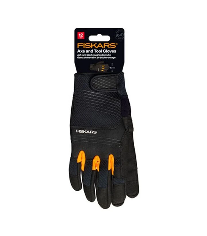 Рукавички для сокири та інструменту Fiskars 1071151 - захисний аксесуар для роботи з деревиною та садовим інвентарем. Посилені зони, амортизація та вентиляція забезпечують комфорт і надійність під час щоденного використання.