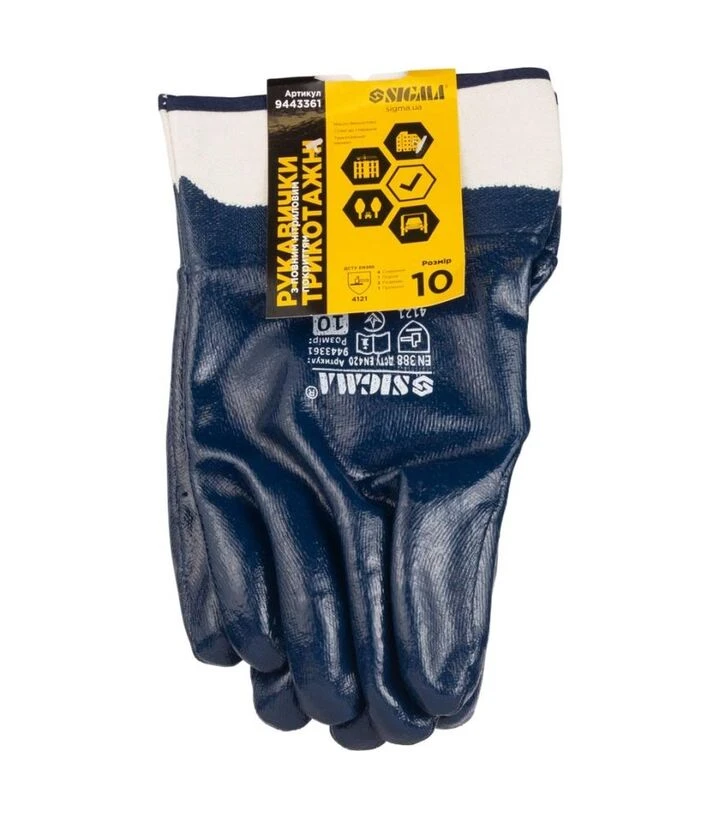 Відгуки Рукавички трикотажні Sigma з повним нітриловим покриттям, розмір 10 (9443361)