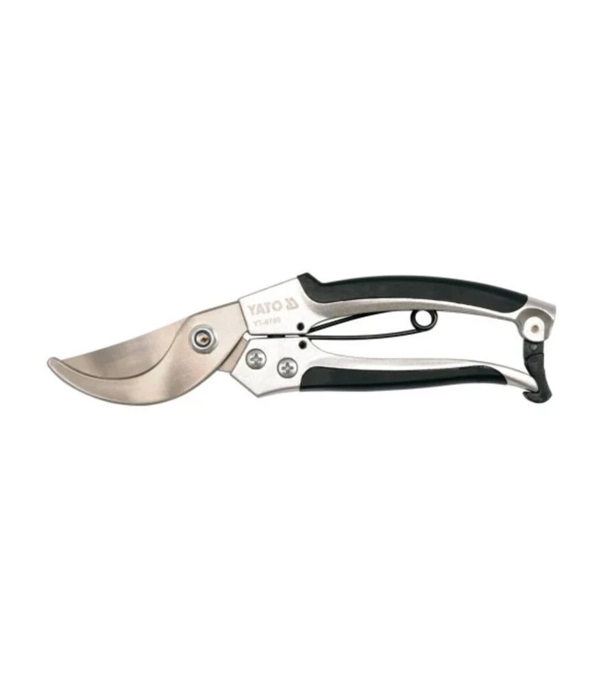 Секатор універсальний YATO, 200 мм з блокуванням (YT‑8790) Секатор YATO YT‑8790 - ручний інструмент загальною довжиною 200 мм з обвідним сталевим лезом, призначений для обрізки гілок, пагонів та декоративних або плодових рослин. Оснащений механізмом блокування, що дозволяє безпечно фіксувати леза у закритому стані - це зручно для перенесення та зберігання, зменшує ризик випадкового відкриття. Максимальна товщина гілки, з якою справляється інструмент - близько 15–18 мм, що підходить для молодих чи середніх за товщиною гілок декоративних і плодових дерев. Це робить YT‑8790 універсальним інструментом для приватного саду чи дачної ділянки.