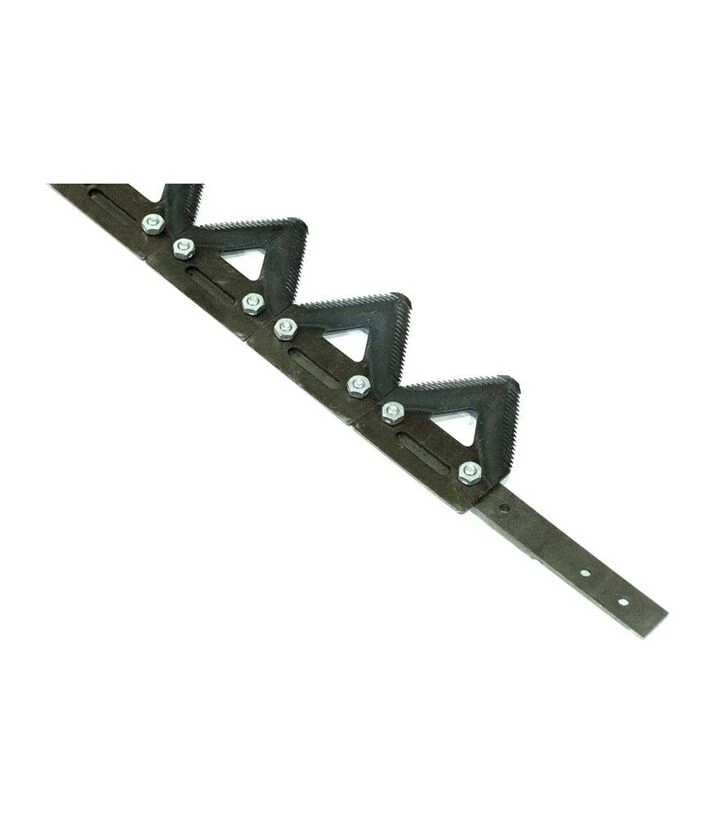 Секція коси поставляється у зібраному вигляді, що дозволяє швидко встановити її на жниварку. Дрібна насічка сегментів забезпечує ефективну роботу з різними культурами та стабільний зріз навіть у складних умовах.
