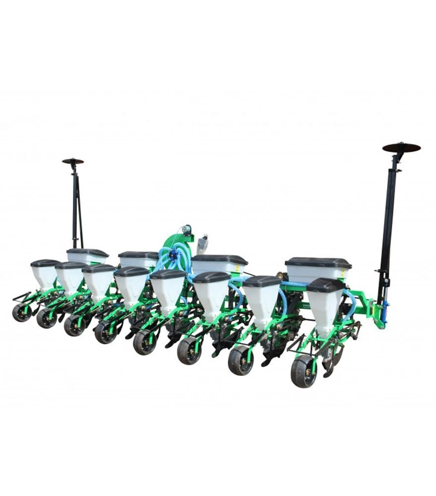 Сівалка ORIGIN CORN 8-01 комплектується двома наборами дисків для висіву різних культур, має надійну маркерну систему для точного дотримання міжряддя та великі бункери для насіння і добрив. Вентилятор пневмосистеми приводиться у дію від ВОМ трактора, що забезпечує стабільний тиск повітря під час роботи. Конструкція дозволяє легко обслуговувати агрегат та швидко переналаштовувати його під різні культури.