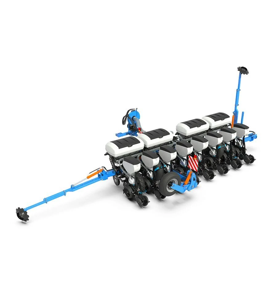 Сівалка оснащена вакуумною системою висіву та V-подібними прикочуючими колесами, що забезпечують якісне закриття борозни і контакт насіння з ґрунтом. Суцільна рама гарантує стабільну роботу навіть на нерівних ділянках поля. Ємності для насіння та добрив дозволяють працювати без частих зупинок. Кожна секція працює незалежно, що дає змогу точно налаштовувати параметри висіву під конкретні умови.