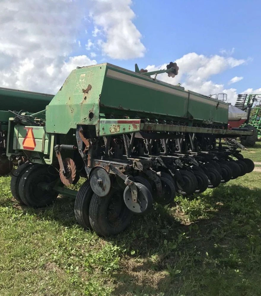 Сівалка Great Plains 2SF30 - це 2-х секційна складна сівалка, що забезпечує ефективний посів різних культур. Завдяки робочій ширині 9,1 метра та міжряддю 25,4 см, вона оптимально підходить для великих агрогосподарств. Під час роботи сівалка використовує 36 сошників, що забезпечує рівномірний розподіл насіння. Її конструкція дозволяє швидко і зручно транспортувати, що є важливим фактором для аграріїв. Об'єм основного бункера становить 2114 літрів, що дозволяє зменшити кількість завантажень під час сівби.
